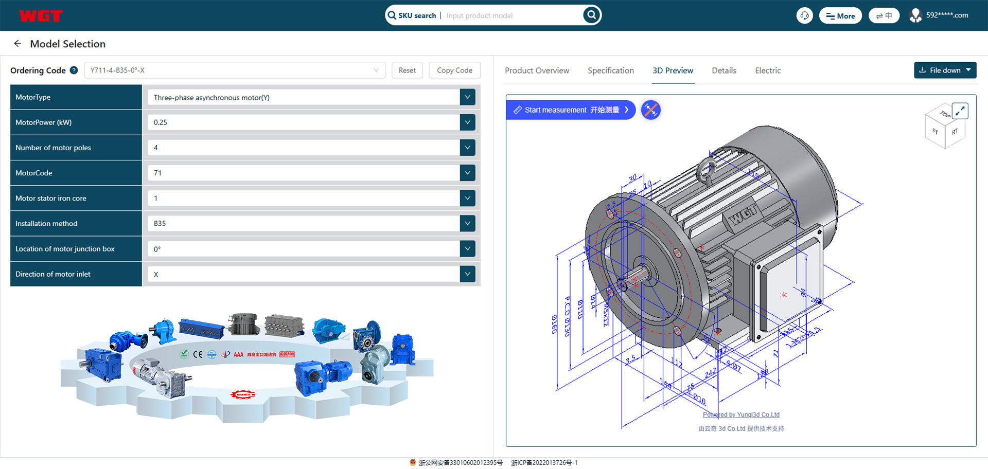 Based on our company's full range of motor and reducer product systems, we aim to build an intelligent selection platform that integrates parameter selection, 3D visual preview, technical parameter verification, and model matching**. This platform caters to the needs of rapid selection, technical verification, and solution output in industrial scenarios, achieving digitalization, visualization, and precision in the entire product selection process. This enhances customers' selection efficiency and accuracy.