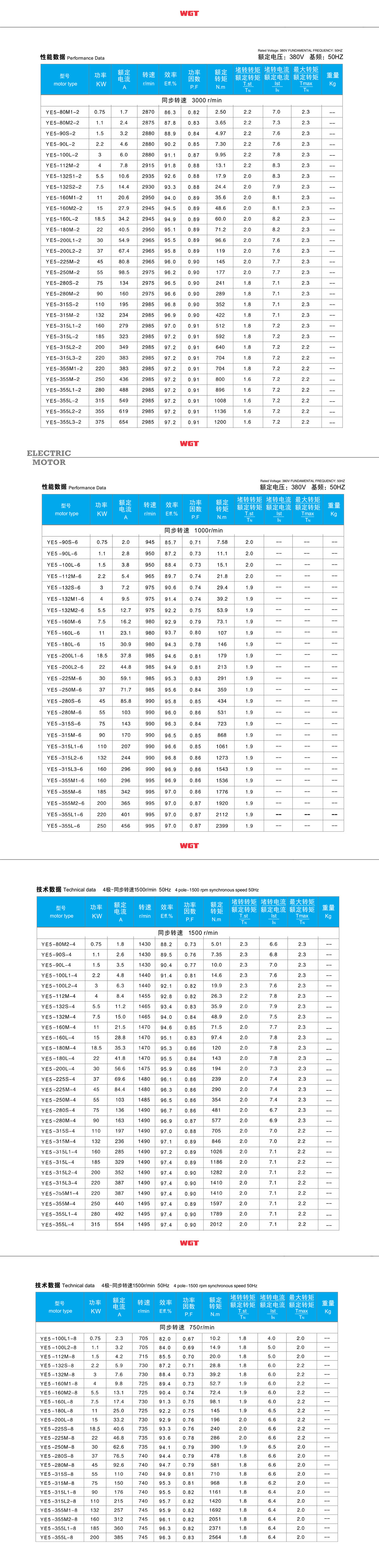 Technical Data: Centre height of frame: 80-355mm Power range:0.55-315kW Rated voltage:380V or order Rated frequency:50Hz or 60Hz Protectionclass:IP54orIP55 Insulation class:F Duty type:S1
